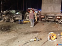 Сотрудники Государственной автоинспекции работают на месте происшествия. Движение на данном участке дороги временно ограничено в обоих направлениях.