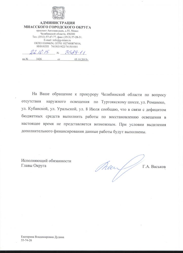 Как я понимаю, администрация проводит котировку на "обеспечение освещения города" и уже с победителем заключает контракт. И ее обязанность - это контроль за соблюдением условий контракта и принятие мер, со штрафными санкциями, вплоть до расторжения! Но судя по нижеприведенному ответу И. О. Главы, на полноценный контракт денег в бюджете - не хватило.