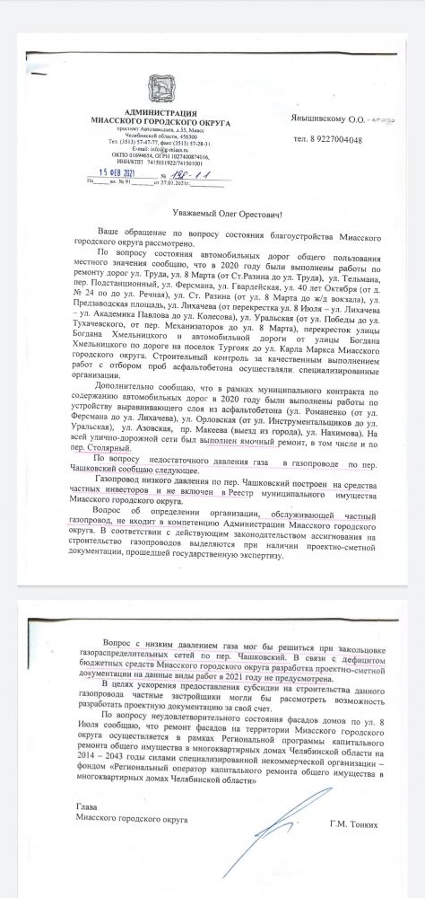 Олег, шикарный ответ. Вот так и работает наша администрация. От всего отмазались, красавчики! Этот ответ призеденту показать заодно и на тв.