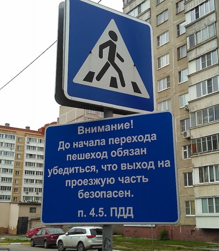 И властям хочется сказать, может на переходах разместить такие таблички, чем лепить "лежачих полицейских" по всему городу.