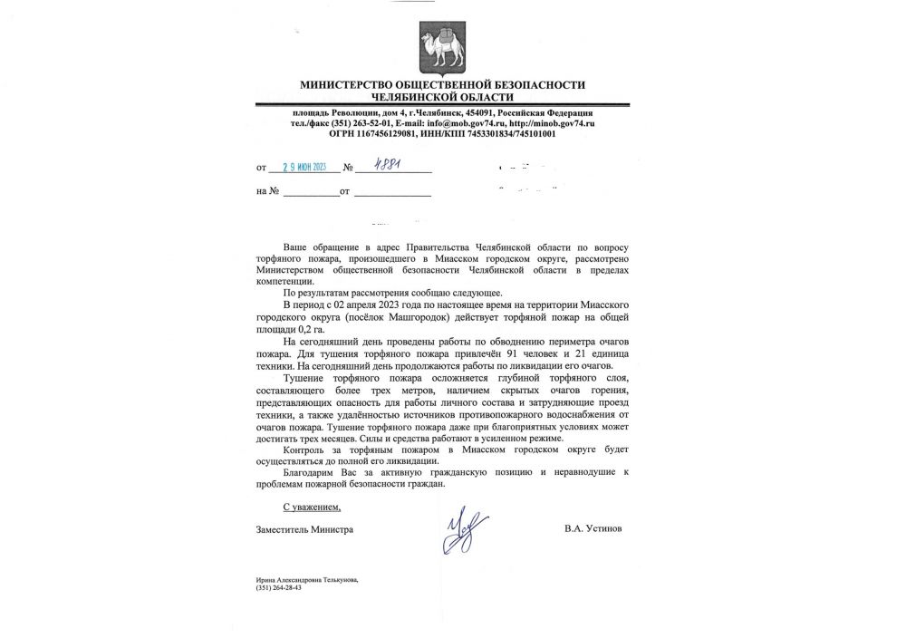 вот, например, такие ответы (как под копирку) приходят на обращения о торфяном пожаре в машгородке