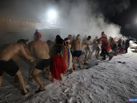 Миасские любители зимнего купания устроили традиционный заплыв в ледяной воде в посёлке Ленинск |