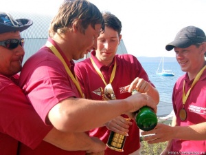 Тургояк попрощался с участниками регаты памяти Андрея Падучина. Судьба главного приза всероссийских соревнований решилась вчера, 21 июня. Имена сильнейших яхтсменов прозвучали на торжественной церемонии закрытия чемпионата. Гонки с пересадкой экипажей продолжались на Тургояке четыре дня. За это время погода обеспечила спортсменам гамму по-настоящему морских впечатлений - от полного штиля до грозного шторма на озере. Чего стоила только одна ночная гроза, в ночь на 20 июня, подобно которой, как говорили яхтсмены, они не видели даже в небе над морями и океанами. Эта регата запомнится участникам и необыкновенным накалом страстей, разыгравшихся в споре за победу. Лидерство с первых же гонок захватили несколько экипажей, и борьба среди них велась до последнего. Опытным яхтсменам серьезную конкуренцию составили довольно молодые спортсмены, например, воспитанники миасской детской парусной школы, основанной Андреем Падучиным - экипаж Дмитрия Лукьянова со шкотовыми Иваном Бирюковым и Максимом Клявлиным. Ребята в итоге заняли десятое место. Еще один экипаж, представлявший Миасс, рулевого Евгения Берсенева, поднялся на седьмую строчку итоговой таблицы. А тройку призеров составили гости тургоякской регаты. "Бронзу" завоевала сборная команда Снежинска-Новоуральска рулевого Евгения Никифорова, вторыми финишировали челябинцы - Константин Беспутин (рулевой), Владимир Абдулгазин и Павел Созыкин (шкотовые). Победителем уже в третий раз в истории Кубка Андрея Падучина стал экипаж Сергея Мусихина из Екатеринбурга, со шкотовыми Кириллом Лузиным и Денисом Тюриковым. С Денисом, по признанию Сергея, на этой регате они выступали впервые. Однако дебют совместного выхода на воду в столь серьезных соревнованиях оказался удачным. На вопрос о секретах победы Сергей ответил так: "Может быть, мне Андрей Падучин помогает - с ним мы были в очень хороших отношениях. А удачу… возможно, принесли мои очки - они мне помогают смотреть по сторонам, оценивать расположение на дистанции, что очень важно в гонках. Есть, конечно, у нас, яхтсменов, и свои приметы. Я вот, например, никогда не бреюсь во время регаты, а желание загадываю во время стрижки". Отметил победитель и хорошую организацию соревнований. Их главным спонсором в этом году стало производственное объединение "Трек", первым "рулевым" которого был Андрей Падучин. Огромную помощь и поддержку оказали и другие спонсоры, которым председатель совета директоров Елена Падучина на церемонии закрытия регаты высказала благодарность. Среди них - гостиничный комплекс "Крутики", Медицинский Центр Бреднева, а среди информационных спонсоров было и агентство новостей "NewsMiass.ru". Экипаж победителей после награждения и вручения медалей покачали - только не руки их друзей и коллег, а вода Тургояка: как водится у яхтсменов, лучших бросили в воду. После того как отгремели фанфары и был опущен флаг соревнований, спортсмены начали разъезжаться. И некоторое время еще на дороге, ведущей из яхт-клуба "Чайка", оставалась своеобразная "звездная дорожка" - из мокрых следов, оставленных ногами победителя. Сергей, "Муся" среди своих, оставил еще напоследок и интригующее обещание - выступить в следующей регате уже в качестве шкотового. Так что у других яхтсменов вырастут шансы на победу. В конце июля Тургояк вновь ждет сильнейших яхтсмено