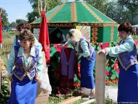 Сабантуй был открыт выступлением гостей из Челябинска и Златоуста. Яркие, в самобытных костюмах, они пели песни о солнце и земле.