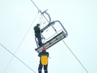 Спасение на высотеМиасские спасатели отрабатывают технику эвакуации пострадавших в горнолыжном центре