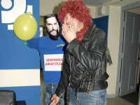 В фойе была организована стилизованная барная стойка: здесь чрезвычайно воспитанный певец Шнур угощал женщин шампанским и фруктами, а гламурный ди-джей очаровывал улыбками и... двигался в ритмах современной эстрады.