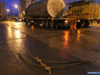 Около 9 часов вечера, 2 апреля, ГИБДД пришлось ограничить движение в верхней части Предзаводской площади, напротив пожарной части. Прицеп, перевозивший большую цистерну, зацепил провода контактной сети и оборвал значительную часть очень сложной в этом месте развязки. Кроме того, выступающим монтажным "ухом" цистерны как крюком зацепило и оборвало все поперечные тросы, поддерживающие провода контактной сети. Аварийной службе пришлось буквально распутывать клубок оборванных проводов, чтобы... [далее]