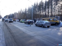 Сегодня около 17:30 на Тургоякском шоссе примерно в полукилометре от остановки "Лепешковая" по направлению к машгородку произошло ДТП с участием четырёх транспортных средств. Виновница аварии, девушка, управлявшая "ДЭУ Матиз", вероятно не справилась с управлением на изгибе дороги и столкнулась со встречной маршруткой. "Газель" от удара "ушла" в сугроб, а "Матиз", крутясь по дороге, повредил ещё две машины: "КИА" и "Форд".
