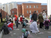 Вчера, 5 мая, в день главного праздника православных - Пасхи - в храме Богоявления была проведена праздничная программа для детей. Нынешний визит в храм Богоявления запомнится надолго и детям, и взрослым - для этого было несколько причин. Педагоги и воспитанники воскресной школы и школы звонарей подготовили замечательное развлечение для юных прихожан у центрального входа в храм, да и природа также поспособствовала празднованию.