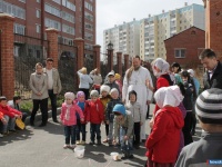 Вчера, 5 мая, в день главного праздника православных - Пасхи - в храме Богоявления была проведена праздничная программа для детей. Нынешний визит в храм Богоявления запомнится надолго и детям, и взрослым - для этого было несколько причин. Педагоги и воспитанники воскресной школы и школы звонарей подготовили замечательное развлечение для юных прихожан у центрального входа в храм, да и природа также поспособствовала празднованию.
