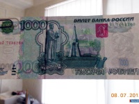 Обнаружена фальшивкаПри пересчёте выручки в одном из банков Миасса была обнаружена фальшивая тысячная купюра
