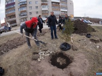 Первая дюжинаВ результате агитационной акции по благоустройтсву города к зелёным насаждениям прибавилось ещё двенадцать деревьев