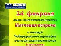 "Повоюют" за призыВ честь Дня защитника Отечества пройдёт матчевая встреча автозаводчан с чебаркульскими военными по мини-футболу и волейболу