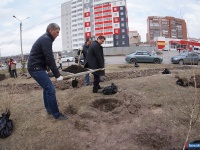 Первая дюжинаВ результате агитационной акции по благоустройтсву города к зелёным насаждениям прибавилось ещё двенадцать деревьев