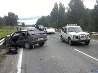 Устанавливаются обстоятельства ДТП Водитель "девятки" погиб в результате лобового столкновения с молоковозом на трассе Москва-Челябинск