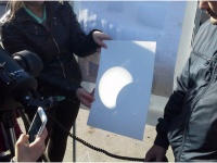 Наблюдали удивительное событиеНа площадке перед домом детского творчества "Юность" прошёл увлекательный урок астрономии - школьники наблюдали солнечное затмение