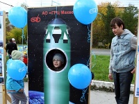 Ракета мечтыНа масштабном общегородском празднике возле стендов ГРЦ детей и взрослых ждали познавательные тематические викторины и возможность сфотографироваться в ракете