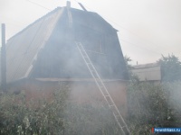 Сегодня около половины шестого утра в СНТ "Автомобиль" огонь охватил садовый деревянный дом (4х6м). В момент возгорания в доме никого не было. О пожаре сообщили очевидцы события. В результате пожара дача уничтожена полностью. К тому же повреждена кровля соседней дачи. По предварительным данным причиной возгорания стало неосторожное обращение с огнём неустановленных лиц.