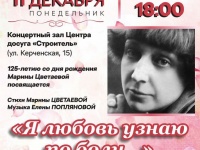 "Я любовь узнаю по боли…"В ЦД "Строитель" прозвучит программа к 125-летию Марины Цветаевой в исполнении челябинских музыкантов