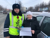 Цветы для автоледиСотрудники миасского отдела ГИБДД поздравили девушек-водителей в канун 8 Марта