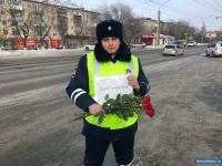 Вчера, 7 марта, в преддверии Международного женского дня полицейские Миасса поздравили прекрасную половину человечества с наступающим праздником. Необычную акцию сотрудники городского отдела ГИБДД провели на самой оживлённой улице - проспекте Автозаводцев.