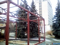 На минувшей неделе с юго-западной стороны торгового центра "Малахит" закипело строительство: рабочие залили фундамент и в течение нескольких дней установили каркас торгового павильона. Учитывая, что перед ТЦ уже красуется несколько ларьков - салоны сотовой связи, цветочный и фруктово-овощной киоски, - машгородовцы и руководство "Малахита", мягко говоря, впали в недоумение, переросшее в негодование.