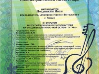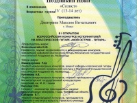 С 9 по 11 марта в городе Уфе прошёл I Всероссийский конкурс исполнителей на классической гитаре "Мой остров - гитара". В музыкальном состязании приняли участие более 90 музыкантов из разных уголков России: Екатеринбурга, Новосибирска, Магнитогорска, Тольятти, Миасса, Московской области и других городов России.
