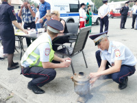 Неподалёку от Миасса, возле стелы "Европа - Азия" на федеральной трассе М5, сотрудники ГИБДД организовали акцию для водителей транзитного транспорта "Отдохну и поеду дальше!".