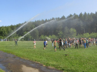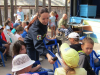 К встрече с гостями из профильных ведомств отдыхающие ребята подготовились заранее: каждый отряд приветствовал взрослых "кричалкой" и плакатом на пожарную тематику, а вожатые станцевали танец дружбы огня и воды.