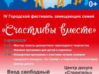 4 ноября, когда вся Россия будет отмечать День народного единства, в Центре досуга "Строитель" состоится ещё одно праздничное мероприятие. Там будет проходить IV Городской творческий фестиваль замещающих семей "Счастливы вместе".