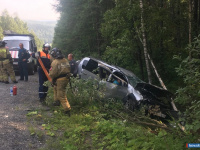 Сегодня, 8 августа, утром на дороге между Миассом и Златоустом произошла авария. Легковой автомобиль вылетел с дороги, перевернулся на крутом склоне и врезался в деревья.