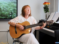 В этот раз наша землячка провела литературный вечер, посвящённый малой родине. Читала стихи, пела песни под гитару, музицировала на пианино.