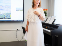В этот раз наша землячка провела литературный вечер, посвящённый малой родине. Читала стихи, пела песни под гитару, музицировала на пианино.