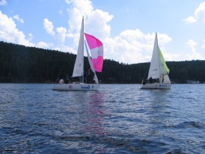 Открывшийся 12 июля открытый Чемпионат Челябинской области по матчевым гонкам (I этап) - "Кубок Тургояка - 2007" вчера, в последний день соревнований, 15 июля, определил победителей. Финальный этап, как и предыдущие, проходил при благоприятной погоде - попутном ветре, легких волнах и ласковом солнце. Как заметили сами спортсмены, Тургояк, хозяин гонок, в честь которого они и названы, благоволил все дни соревнований. Так что чемпионат отличился четкостью технической стороны процесса гонок и, конечно, красотой и зрелищностью: синие просторы озера, зеленые массивы гор, подступающих к берегу, и белые паруса, которые, отражаясь в воде, как будто соперничали с плывущими, но по небу, облаками. На старт участники выходили парами на одинаковых яхтах, поэтому результат определялся наиболее объективно. Любое преимущество гарантировала не лучшая оснащенность судна, а лучшая подготовленность гонщиков, их опыт и мастерство. По правилам соревноваться экипажи начинали уже на старте. После сигнального свистка арбитра за отведенное время - несколько минут, команды-дуэлянты старались выбрать оптимальное место начала гонки. Однако удерживать хорошие позиции, завоеванные на старте, нужно было на протяжении всего этапа. Вовремя закрепить одни снасти, убрать другие, опередить действия соперника, успешно пройти поворот, совладать с нервами и парусом, предоставляя на волю ветра последние отрезки пути - это лишь верхняя часть айсберга, видимая зрителям. Прохождение дистанции каждой яхтой находилось под неусыпным контролем судей "специального назначения" - двух ампайров, следовавших за участниками на катере и призванных разбирать спорные моменты. Лидер, определившийся еще в первый день соревнований, набирал победные очки и в дальнейшем. В заключительной борьбе ему опять не было равных, и, достигнув финиша, экипаж Сергея Мусихина (г. Екатеринбург) встречал слова поздравления и крепкие рукопожатия. По результатом гонок второе место заняла команда Алексея Ступки (г. Екатеринбург), третье - Сергея Горошанского (г. Снежинск). Миасские яхтсмены - экипаж Дмитрия Мазилкина и Евгения Берсенева, оказались на шестом и седьмом местах соответственно. После нескольких минут отдыха первые шесть участников по результатам чемпионата одновременно вышли на старт флит-рейса. Эти гонки не входили в основной зачет, тем не менее они дали шанс еще раз сразиться и продемонстрировать свое мастерство тем, кто по разным причинам не смог достойно показать себя в матч-рейсе. Первое место вновь досталось обладателю Кубка Тургояка-2007, и второе - серебряному призеру этого чемпионата, а третий результат показал экипаж Владимира Абдулгазина (г. Челябинск). Команда Д. Мазилкина (г. Миасс) поднялась на ступеньку выше и по итогам флит-рейса стала пятой. Все яхты выстроились в ряд у причала в ожидании следующих соревнований, а на берегу в ожидании награждения тесным рядком стали все участники "Кубка Тургояка-2007". Кроме тройки призеров, судейская команда особо отметила двух яхтсменок - Анну Михееву и Татьяну Яковлеву, и самого молодого шкипера - Д. Мазилкина. Торжественная процедура - снятие флага чемпионата - была проведена победителем соревнований, С. Мусихиным. Его же, по заведенной традиции, в заключение праздника окунули в воду. Лилия Нагаева