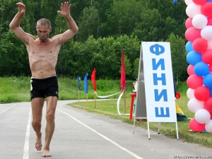 Вчера, 29 июня, миасский международный марафон "Бег чистой воды" отметил совершеннолетие. Участниками большого праздника красоты и здоровья духа и тела стали гости из разных городов России и стран ближнего зарубежья. География многочисленных участников оказалась, как всегда, широкой: Подмосковье, Караганда, Сургут, Самара, Тобольск, Саратов, не говоря уже о городах и поселках Челябинской области. К сожалению, до старта достаточно серьезного марафона (его протяженность составляет 42 км и 195 м) многие не добрались, вернее, не доехали: бушевавшая накануне гроза испугала часть бегунов, особенно самых юных. Как рассказала директор марафона Любовь Казновская, несколько десятков ребят, собиравшихся приехать, в последний момент отказались. Как оказалось, совершенно напрасно. Погода обеспечила марафонцам оптимальные условия для бега: приятный освежающий ветерок и ласковое солнце. На стадионе машгородка, откуда стартовали все участники, для мальчишек и девчонок организовали веселую эстафету, разнообразные игры и конкурсы. Однако младшее поколение бегунов приятно удивляло и своей выносливостью и серьезным подходом. Малыши смело брали один километр, чуть постарше пробегали 5 км, а один мальчик в очередной раз взял дистанцию в 21 км. Это гость из Тюмени Данил Сидоров, который лишь два года из своих восьми провел без миасского международного марафона: он принимает участие на "Беге чистой воды" с двух лет, а уже три года подряд бежит полумарафон. Столь юный приверженец активного и здорового образа жизни, с похвальным стремлением и стойкостью, которые даны далеко не каждому взрослому, был отмечен специальным призом. Заслуженные аплодисменты и награду получил и его старший коллега - самый опытный бегун 84-х лет - снежинец Владимир Лобастов, участник 5-километровой дистанции. Абсолютным победителем марафона стал Сергей Каледин из Уфы, грудь победителя финишная ленточка обхватила через 2.33.17 после старта. Сергей принимает поздравления с первым местом уже третий год подряд. Вторым, с разрывом всего в две секунды, пришел Сергей Забоев (г. Полевской, Свердловская область). Третий результат у Артура Сабирова из Екатеринбурга, его время - 2.35.38. У женщин в этом году произошла смена лидера. Прошлогоднюю победительницу потеснила челябинка Марина Мышлянова, ее результат 2.53.37. Землячка Марины Татьяна Тесленко пришла к финишу второй, отстав примерно на семь минут. Третьей стала Наталья Фисун из Каменск-Уральского (3.12.53). Среди миасцев лучшими на дистанции 42 км стали Сабирзян Муллагалиев и Ирина Цыганова, в общем зачете в своей группе ставшие пятым и шестой соответственно. Хорошее время на полумарафоне в абсолютном зачете показали: