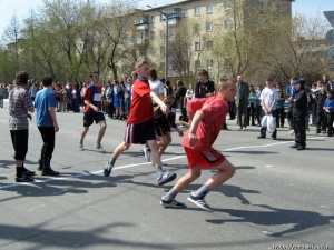Сегодня, 9 мая, сотни легкоатлетов - профессионалов и любителей, учащихся и работников миасских предприятий провели традиционную эстафету на призы администрации округа и газеты "Миасский рабочий". Эстафета "старее" самой Победы, в этом году ей исполнилось уже 72 года, но ее давно и неизменно приурочивают к великому празднику. На старт эстафеты, символично установленный на бульваре Мира, вышли 49 команд. Участники были распределены по трем группам: первую составили ученики основных образовательных школ, вторую - представители городских организаций и высших учебных учреждений, третью - учащиеся средних школ и средне-специальных учебных заведений. Ряды болельщиков сообразно объявляемым стартам команд сменяли попеременно директора школ, техникумов, училищ, учителя физкультуры и тренеры, сотрудники предприятий. Болельщиками были и милиционеры - но не только по служебному долгу (они охраняли спокойствие зрителей и участников эстафеты): в числе бегущих была и команда, выставленная управлением внутренних дел Миасса. Спортсменов болельщики поддерживали активно и громко - победа в эстафете считается престижным завоеванием. В результате упорной и горячей борьбы, развернувшейся сегодня под весенним палящим солнцем победа и призовые места досталась командам, кто на протяжении уже нескольких лет не сходит с позиций лучших. Среди городских организаций: