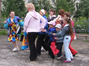 Праздник улицы Готвальда - главной улицы поселка Динамо - отметили жители и гости поселка в субботу, 1 августа, на площади перед одноименным Дворцом культуры. Даже сами работники ДК "Динамо" не берутся вспомнить, который год собираются динамовцы на этот праздник. К сожалению, в этом году гуляния получились крайне немноголюдными, поскольку праздничным планам помешал затяжной дождь. Тем не менее, пришедшим это веселья не испортило - зрители с удовольствием посмотрели концерт и погрелись, участвуя в озорных играх и конкурсах. Не состоялись по погодным условиям лишь конкурс рисунков на асфальте и дискотека. Перед пришедшими выступил любимый многими ансамбль народной песни "Ивушка", а также приезжая шестнадцатилетняя поэтесса Александра Сафонова - лауреат многих российских поэтических конкурсов и внучка жительницы Динамо. Александра приехала в гости к бабушке из Хабаровска, и, увидев объявление о празднике, сама пришла с предложением прочесть стихи в подарок жителям поселка. Ее стихи о дружбе и о Родине нашли живой отклик у слушателей. Сначала не слишком охотно, а потом с все большим энтузиазмом участвовали взрослые и дети в конкурсах на сообразительность, быстроту и творческое мышление. "Нанизывали" на веревки собственных соседей - кто больше, одевали друг друга в газетную одежду. Самым непродолжительным оказался шуточный конкурс на самого высокого и самого низкорослого жителя поселка, в котором изъявили желание участвовать единственный претендент, вернее, "два в одном" - мужчина и сидевший у него на шее малыш. Конечно, под общий смех, оба оказались победителями - вместе и по отдельности. Праздник прервался из-за усилившегося дождя, но под крыши его участники разбегались с улыбками. Софья Овсянникова