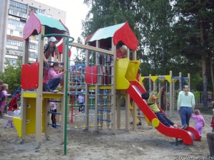 Детская площадка, обещанная градоначальниками на юбилей северной части города, готова и открыта для маленьких миасцев