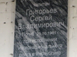 Мемориальная доска в память о погибшем в афганской войне миасце Сергее Григорьеве установлена на фронтоне школы № 44 Постоянный адрес статьи: http://newsmiass.ru/index.php?news=19314