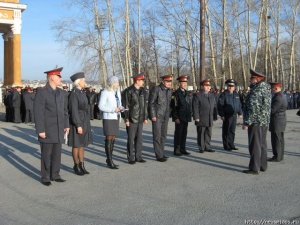 Строевой смотр личного состава провела сегодня, 12 апреля, миасская милиция. Как пояснил начальник милиции общественной безопасности УВД Юрий Зуев, мероприятие проходит дважды в год: весной и осенью. Всех представителей милиции проверяют на наличие необходимой одежды и обуви, также проводится проверка жетонов и удостоверений. Погода, как и прежде случалось, ещё не совсем располагает к переодеванию в более лёгкую одежду. Однако, как известно, приказы не обсуждаются, и с сегодняшнего дня все стражи порядка Миасса официально сменили зимнее обмундирование на летнее. Строевой смотр показал, что одежда сотрудников милиции соответствует предъявляемым требованиям. Сегодня же, 12 апреля, заложены традиции ещё одного мероприятия. Пятерым сотрудникам отдела вневедомственной охраны, которые прошли первоначальное обучение в учебном центре, в торжественной обстановке вручили удостоверения. Евгения Поносова