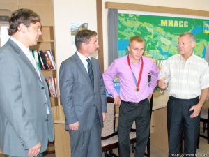 По приглашению главы администрации Александра Любимова у него в гостях сегодня, 6 августа, были представители федерация бокса Миасса, областной федерации бокса и воспитанник миасской школы бокса, победитель чемпионата Европы-2010 Эдуард Абзалимов. После традиционного обмена подарками, сувенирами и поздравлениями глава администрации отметил несомненную заслугу первого тренера Валерия Проскурякова в подготовке чемпиона, поблагодарил за труд и энтузиазм в этой нелёгкой работе. Президент федерации бокса Эдуард Микульский обратил внимание главы на недостаточное финансирование федерации, связанные с общим финансовым кризисом, определённые трудности с оплатой труда тренеров. При этом у этого вида спорта в Миассе богатые традиции, есть талантливые ребята и девчата. В результате обмена мнениями было решено в ближайшее время посетить тренировочную базу, чтобы оценить уровень технической оснащённости "на месте". Эдуард Абзалимов - заслуженный мастер спорта по боксу, 26-летний спортсмен, родился в Миассе, выступает в весовой категории 54 килограмма. Боксом начал заниматься с 1993 года, а уже в 2001 году стал победителем юниорского первенства России и Европы. В 2010 году завоевал золото чемпионата Европы. Сегодня живёт и тренируется в Челябинске. "Наша задача - поощрять и поддерживать все виды спорта в Миассе: и бокс, и парусный спорт, и скалолазание, и футбол, и хоккей. А спортивные результаты, я думаю, будут" - сказал А. Любимов в завершение встречи.