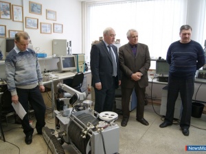 Сегодня, 4 марта, на электротехническом факультете филиала ЮУрГУ в Миассе состоялась "презентация" двух робототехнических комплексов, созданных специалистами университетской лаборатории по заказу Инженерно-технического учебного центра робототехники (Москва). ИТУЦР является структурой "Росатома" и сотрудничает с создателями уникальных робототехнических комплексов из Миасса на протяжении двух десятков лет. Сторону заказчика представляла группа сотрудников ИТУЦР во главе с директором Олегом Петровичем Гойдиным и его заместителем по научной работе Николаем Сидоркиным. Плоды трудов коллектива лаборатории робототехники демонстрировали профессор кафедры автоматики МФ ЮУрГУ Игорь Войнов, стоявший у истоков роботостроения в Миассе (он же - глава Миасского городского округа, избран на этот пост 14 марта 2011 года), а также заведующий лабораторией робототехники Борис Морозов. Роботы, которые разрабатываются и изготавливаются в ЮУрГУ, относятся к изделиям специального назначения. Они создаются для того, чтобы выполнять работу там, где присутствие человека невозможно или нежелательно: например, при работе в условиях сильного радиационного излучения. Каждое такое изделие уникально, оно разрабатывается и создается для выполнения определенных задач. Первый робот, созданный на НПОЭ под руководством И. Войнова по заказу Института физико-технических проблем РАН в 1991 году, спустя пять лет после трагедии на Чернобыльской АЭС, способен был работать на протяжении 100 часов непрерывно на месте произошедшего ядерного взрыва, в самом его эпицентре, где интенсивность радиационного излучения составляет 104 рентген в час. 11 лет назад, возглавив Миасский филиал ЮУрГУ, профессор Войнов создал в университете лабораторию робототехники, где сегодня наряду со штатными сотрудниками вуза трудятся приглашенные специалисты и студенты. Представителям ИТУЦР и прессе было представлено два робота - один новый и один модернизированный с учетом пожеланий заказчика. Оба они снабжены гусеничными шасси, позволяющими перемещаться в зону работы, где требуется выполнить поставленную задачу, в том числе по непредсказуемо пересеченной местности, под водой на глубине до полуметра, преодолевая лестничные марши, разворачиваясь на узких участках, въезжая в узкие двери лифтов. Робототехнические комплексы (РТК) оснащены системами видеонаблюдения, снабжены полутораметровой рукой-манипулятором, способной поднимать при кажущейся ажурности конструкции вес до 35 килограммов. При необходимости их можно дооснастить датчиками для мониторинга окружающей среды. Совместить в одном изделии все эти функции - непростая техническая задача. Многие ноу-хау миасских ученых запатентованы. Первый робот носит имя "Демонтажник". Продвигаясь до места назначения, он разматывает кабель, который обеспечивает питание энергией самого робота. Этот РТК был создан год назад, а теперь по просьбе заказчика доработан таким образом, чтобы он мог работать пилой-"болгаркой", и при этом его рука не разрушилась бы от таких нагрузок. Для решения этой задачи на сочленения руки робота была установлена система датчиков отражения усилий. Она позволяет контролировать распределение нагрузки и реагировать на угрозу разрушения. Эту сложную техническую и математическую задачу миасским разработчикам п