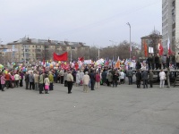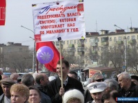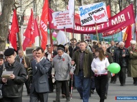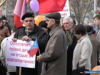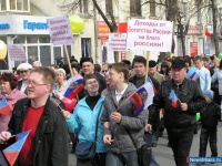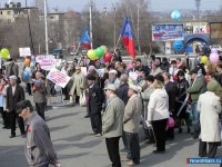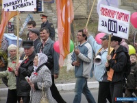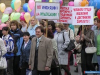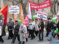 Год от года угасает интерес к проведению первомайских демонстраций и митингов. В этом году колонна почему-то состояла из пенсионеров и женщин, ораторы на митинге не смогли договориться и поочерёдно то поздравляли собравшихся с праздником (не уточняя - с каким?), то призывали к борьбе с правящей партией. Слушателям же было откровенно скучно. Пора уже для привлечения "протестующих" масс устраивать концерты и бесплатную раздачу сладостей.