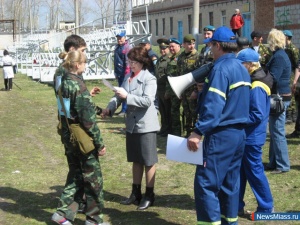 Городские военизированные соревнования "Зарница" ежегодно проводятся в начале мая управлением ГОиЧС, городским управлением образования и советом ветеранов Миасса. Вот и сегодня, 6 мая, на стадионе "Труд" 27 команд школ и техникумов города доказывали свою физическую подготовку и владение техническими военно-прикладными дисциплинами. Кроме того жюри оценивало умение строевую подготовку, выполнение команд и исполнение строевой песни. Как рассказывает специалист по связям с общественностью управления по делам ГОиЧС Ольга Дементьева, ребятам традиционно предстояло пройти десять этапов соревнований: преодоление "мышеловки" полосы препятствий, стрельба по мишени, сборка и разборка автомата, бег в противогазах, туристическая полоса, оказание первой медицинской помощи. На каждом этапе оценивались как техника выполнения, так и скорость прохождения дистанции. Победители у школьных команд определялись в двух группах - младшей (до 15 лет) и старшей, причём в каждой команде должно быть по одной девочке. Отдельно подводились итоги среди команд техникумов и учреждений начального профессионального образования. Места распределились следующим образом: в младшей группе из семи команд на первом месте команда гимназии № 19 (уже второй год подряд!), на втором - школы № 3, на третьем - школы № 7. В старшей группе призёрами стали школа № 20 (1 место), школа № 16 (2 место), школа № 42 (3 место). Среди техникумов первой стала команда геологоразведочного техникума. Грамота совета ветеранов за отличную строевую подготовку на конкурсе строя и песни была вручена команде 44 школы. Кроме грамот и медалей победителям были вручены сладкие призы от управления ГОиЧС и награды от управления образования. Игорь Кривоносов