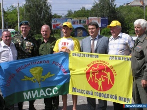 Международный автопробег, посвящённый памяти воинов, погибших в локальных войнах "Мы победим вместе". Целью патриотической акции, по словам руководителя автопробега, председателя Совета челябинской областной общественной организации ветеранов Василия Александровича Катана, является практическая реализация лозунга "никто не забыт, ничто не забыто" и проводится в память всех воинов погибших в время локальных конфликтов. Маршрут автопробега составит порядка 12 тысяч километров и пройдёт через города Златоуст, Юрюзань, Самару, Пензу, Тамбов, Воронеж, Белгород, Харьков, Тирасполь, Бендеры, Кишинёв, Одесса, Керчь, Волгоград. По плану, участники автопробега должны вернуться домой к 10 августа. Будут установлены памятные мемориальные доски трём нашим землякам - Валерию Безгину, Владимиру Рыбаку, Александру Родионову, погибшим в разное время при исполнения воинского долга. Ещё одна мемориальная доска, памяти легендарного основателя ВДВ Василия Маркелова, будет установлена в городе Керчь 2 августа, в день празднования образования воздушно-десантных войск. За возможность установки мемориальных досок организаторы благодарят руководство Приднестровской Республики, которое после переговоров дало согласие на увековечивание памяти наших воинов. Гостей встречали заместитель главы администрации МГО Александр Новицкий, председатель совета ветеранов Павел Воронин, руководитель миасского отделения общественного объединения "За возрождение Урала" Николай Кривошеев. После краткого митинга собравшиеся возложили цветы к памятному камню и почтили память павших воинов минутой молчания, а затем колонна продолжила свой путь.