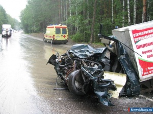 Второй вызов поступил днём с места автомобильной аварии на автодороге Миасс-Чебаркуль. Спасателям с помощью гидравлического инструмента пришлось вырезать незадачливого водителя пикапа из груды железа, оставшегося от автомобиля.