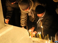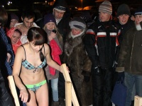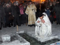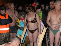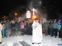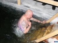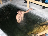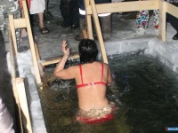 Сегодняшней полночью на берегу Тургояка было столько машин и людей, сколько не в каждые погожие летние дни бывает. Автомобильная стоянка была заполнена полностью, а число желающих смыть грехи в ледяной купели и набрать "живой" воды не иссякало до двух часов ночи. Как и было запланировано, ближе к полуночи из тургоякского храма Архангела Михаила вышел крестный ход, освятив иордани и купели настоятель отец Виталий благословил собравшихся. Надо отдать должное сотрудникам ГИБДД и спасателям: первым удалось чётко организовать движение автотранспорта, вторым - поддерживать порядок и не допускать толчеи у купелей. А ведь поначалу желающие окунуться в озёрную воду стояли в живой очереди. В числе купальщиков на Тургояке был и и.о. главы администрации города Евгений Степовик.
