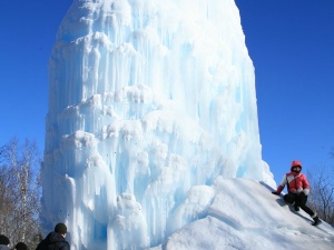 В выходной субботний день 18 февраля клуб туристов "Горизонты Урала" организовал поездку к Ледяному фонтану, который находится на территории национального парка "Зюраткуль". В 1976 году геологи искали залежи руды в деревне Сибирка саткинского района и случайно наткнулись на подземную реку. Из земли забила мощная водяная струя высотой примерно 12 метров. С тех пор на этом месте зимой, особенно после долгих и сильных морозов, вырастает огромный ледяной столб. При ярком солнечном свете он синий-синий. Каждый год столб разный, не похожий на предыдущий, иногда он напоминает силуэты девушек, фигуру Деда Мороза, иногда похож на вулкан. В этом году после длительных суровых морозов ледяная "шапка" выросла высотой метров 15, в ледяной грот внутри глыбы можно заглянуть и полюбоваться видом бьющих ввысь струй. На память о посещении туристы примораживают к глыбе монетки. В эти выходные очень порадовала ясная, солнечная погода, группа после пикника решила забраться на ближайший перевал, откуда туристы полюбовались сказочным видом Уральских гор. В предстоящие выходные клуб туристов "Горизонты Урала" миасского общества инвалидов организует четырёхдневный поход на Таганай, в котором примут участие гости из Москвы. Примечательно, что в состав группы, помимо руководителя Василия Заушицина, входят только представительницы слабой половины человечества. Наверно, они посвятят свой поход защитникам Отечества. Ирина Горностаева