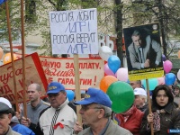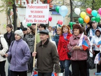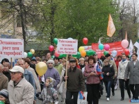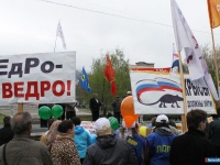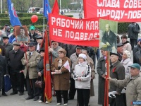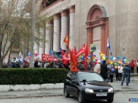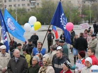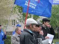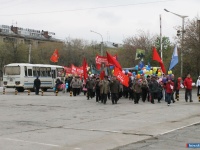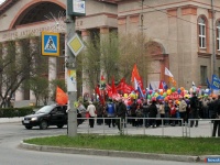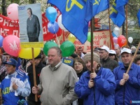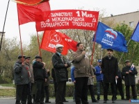 Сегодняшнее прохладное утро (а на градуснике в 10 утра было всего плюс 5) не остановило желающих присоединиться к традиционной первомайской демонстрации. Не сказать, что в этом году она было многочисленной, но к коммунистам присоединились представители ЛДПР, Единой России, профсоюзные организации АЗ "Урал", тургоякского рудоуправления и ряда других организаций. В колонне были замечены даже руководители одного из банков - квинтэссенции капитализма. К традиционным лозунгам "Мир. Труд. Май" и "Да здравствует...", добавились лозунги последнего времени. Колонна прошла по пустынному в это время проспекту от дворца культуры автозаводцев до площади перед администрацией, где прошёл митинг. Речи ораторов собравшиеся, в силу разнородности и полярности интересов, слушали спокойно. Яростные выкрики вызвало лишь выступление Сергея Фёдорова, который приветствовал трудящихся от имени регионального отделения партии "Единая Россия".
