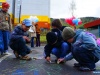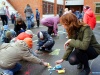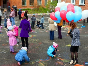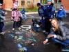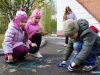 Сегодня состоялось традиционное мероприятие, которое проводят общими усилиями художественное отделение детской школы искусств № 4, библиотека-филиал № 5 и детский сад № 108. Вот уже третий год подряд в канун праздника Победы юные художники приходят к своим подшефным и создают на асфальте маленькие шедевры. Творческий порыв и настроение не испортила даже непогода. Набегающие тучи и дождь, изрядно смочивший асфальт, не помешали реализовать творческие замыслы. Увлекшись работой, дети не заметили, как пролетело время и на серых и мокрых дорожках появились яркие, красочные рисунки. Маленький праздник завершился салютом из разноцветных шаров под радостные крики детворы.